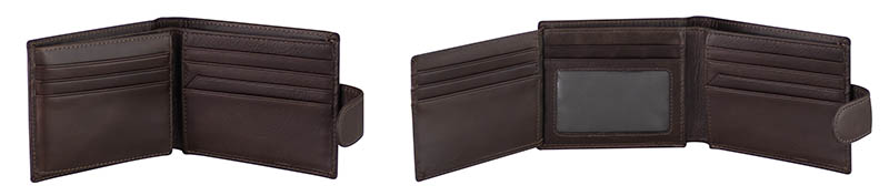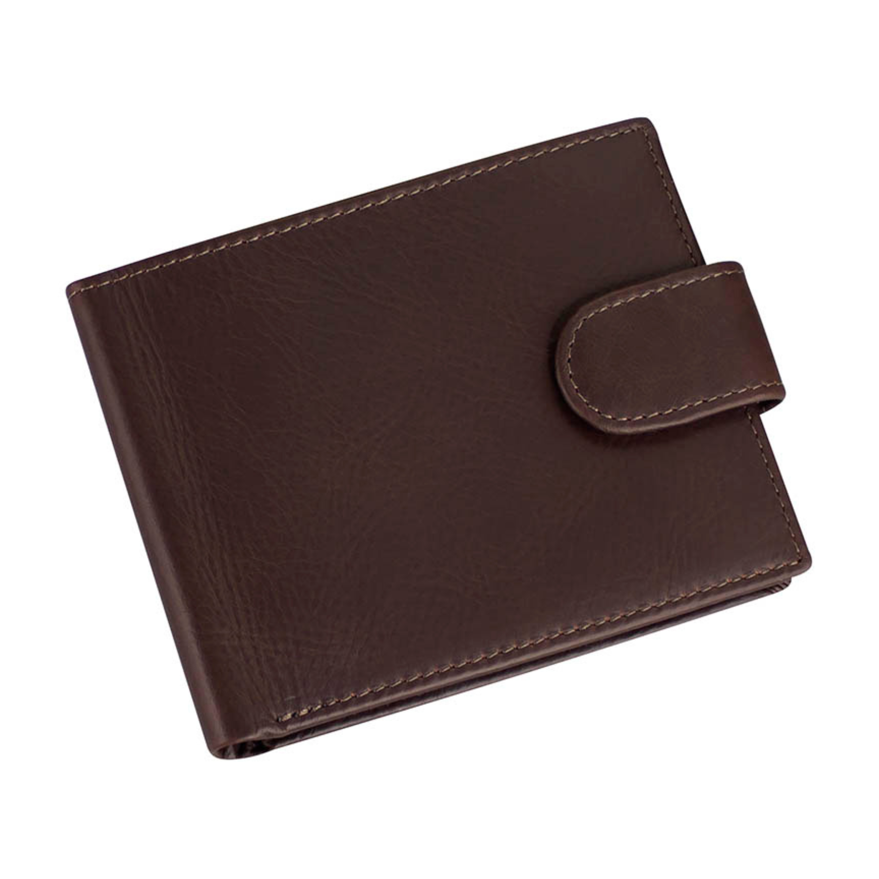 Deluxe Billetera de cuero natural Marrón con broche. Finas terminaciones. 17 compartimentos interiores (3 secciones). Alta resistencia al uso. Presentación en bolsa frozen y caja de cartón forrado negro texturado.